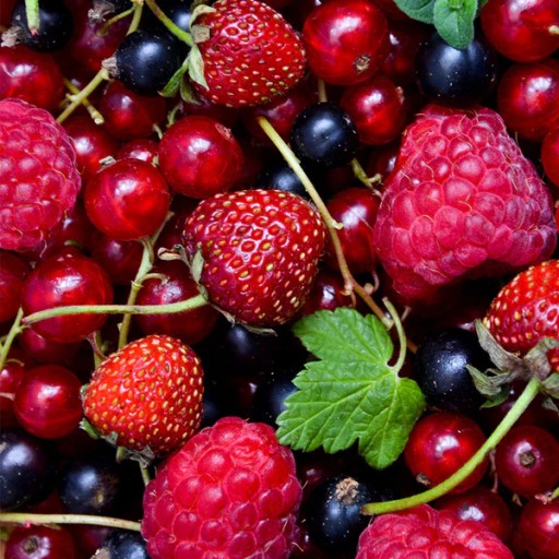 czarna porzeczka, cytryna, malina, czerwone jagody