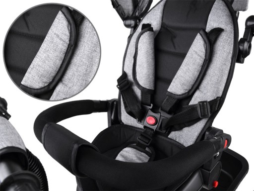 - wyposażony w pasy dla dziecka zwiększające bezpieczeństwo