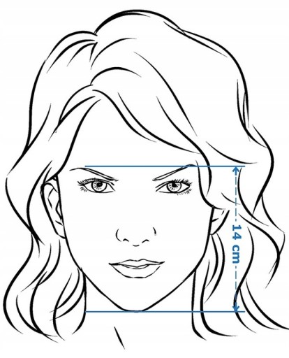 zamknij usta i zmierz odległość między dolna krawędzią brody a linią brwi.