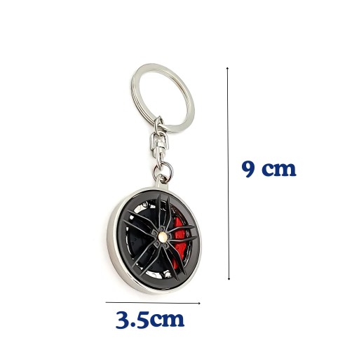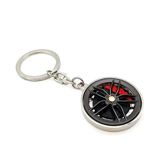 Brelok z kształcie felgi i zacisku hamulcowego, z obracanym środkiem + grawer na odwrocie.