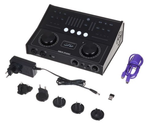 - Zawiera kabel USB-C, zasilacz 12V, licencję Pro Tools Studio oraz subskrypcję Sibelius Artist na 1 rok