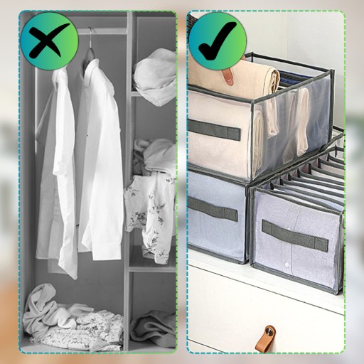 Utrzymanie porządku w szafie, szafce czy szufladzie nigdy nie było tak proste! Uniwersalny składany organizer z przegródkami to praktyczne rozwiązanie, które pozwala na łatwe zorganizowanie przestrzeni i szybkie znalezienie niezbędnych przedmiotów. Dzięki jego konstrukcji z wieloma przegródkami zyskujesz idealne miejsce do przechowywania bielizny, bluzek, ręczników, koszul czy innych ubrań i akcesoriów. Organizer skutecznie zapobiega nieporządkowi i pozwala na łatwe posegregowanie rzeczy.