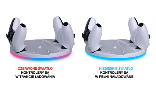 Dzięki wbudowanemu wskaźnikowi stanu ładowania LED, zawsze wiesz, czy kontrolery są już w pełni naładowane. Kolor pomarańczowy oznacza ładowanie, natomiast niebieski – pełne naładowanie. Taka funkcjonalność zapewnia wygodę i łatwość użytkowania, nie musisz już martwić się o poziom naładowania.