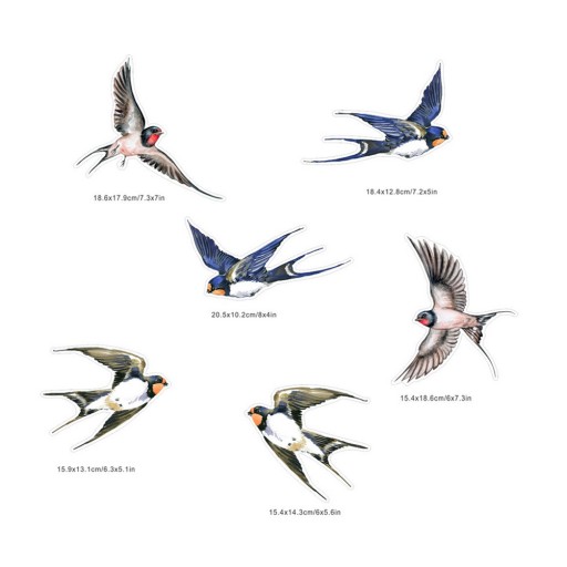 ✅Otrzymasz 12 różnych stylów naklejek z jaskółkami, każdy w jasnych kolorach.