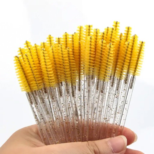 Szczoteczka SPIRALNA kryształ do rzęs 50 szt ŻÓŁTE szczoteczki brokatowe
