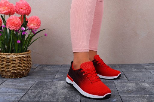 Czerwono-czarne damskie buty wiązane. Wykonane z dobrych jakościowo materiałów. Idealnie sprawdzą się jako obuwie codzienne. Są lekkie i zapewniają wygodę oraz komfort użytkowania. Stabilna podeszwa dobrze amortyzuje stopę.
