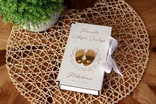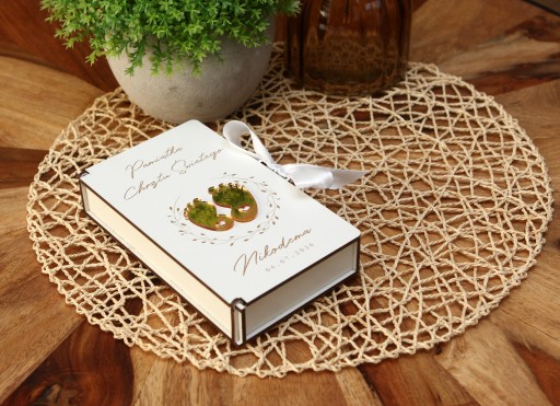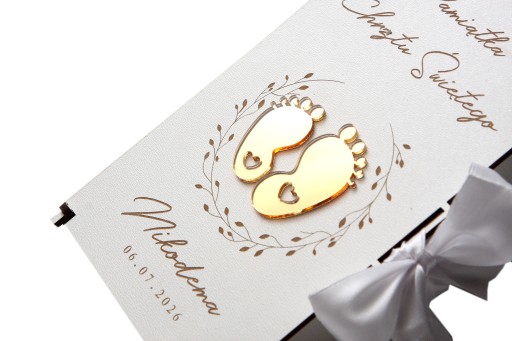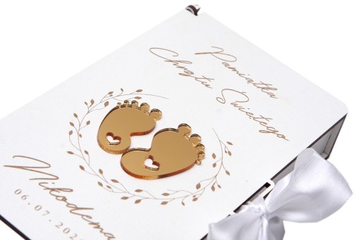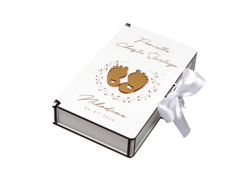 ✅Na zewnątrz pudełka grawerowane jest imię dziecka oraz data uroczystości.