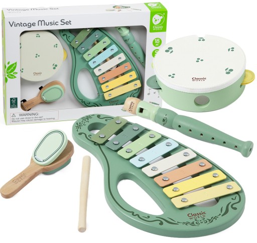 ⭐CLASSIC WORLD Drewniany Zestaw Vintage Instrumentów Muzycznych 18msc+⭐