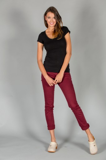 Obuwie drewniaki komfortowe wykonane są z naturalnej skóry i lekkiego drewna lipowego. Model ten posiada wszytą syntetyczną gąbkę na podbiciu stopy dając jeszcze większe poczucie komfortu podczas chodzenia. Buty dostępne są w dwóch wersjach, klasycznej bez otworów oraz z perforacją tzn. w całości poryte niewielkimi otworami które pozwalają stopie oddychać. Podeszwa posiada profilowany kształt, delikatne podparcie sklepienia podłużnego stopy pomaga skorygować płaskostopie podłużne, zagłębienie pod piętę stabilizuje prawidłowe ustawienie pięty eliminując tendencję do koślawienia pięt. Drewniana wkładka w odróżnieniu od skórzanej nie odkształca się podczas użytkowania, wymusza prawidłową postawę, amortyzuje wstrząsy powstałe podczas chodzenia, odciąża kręgosłup i stawy, doskonale wchłania pot i nie odparza stóp. Wysokość obcasa to 5 cm, podwyższenie pięty w stosunku po palców 3 cm.