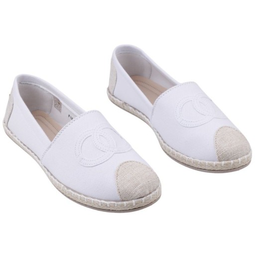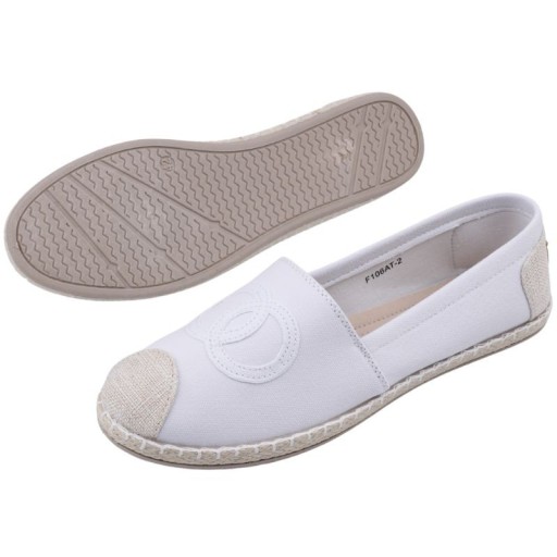 BIAŁE ESPARDYLE DAMSKIE PÓŁBUTY WSUWANE PŁASKIE WKŁ. EKOSKÓRA TRAMPKI