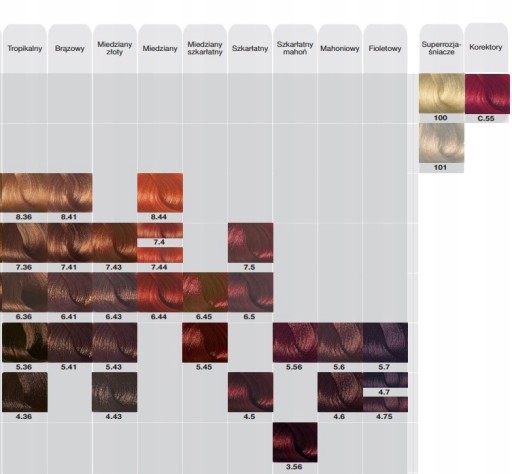 Serii superblondów ( 100 - 121 - 103 - 101 - 102 - 100/0) i korektorów (C.33 - C.55) nie zaleca się do krycia siwych włosów.