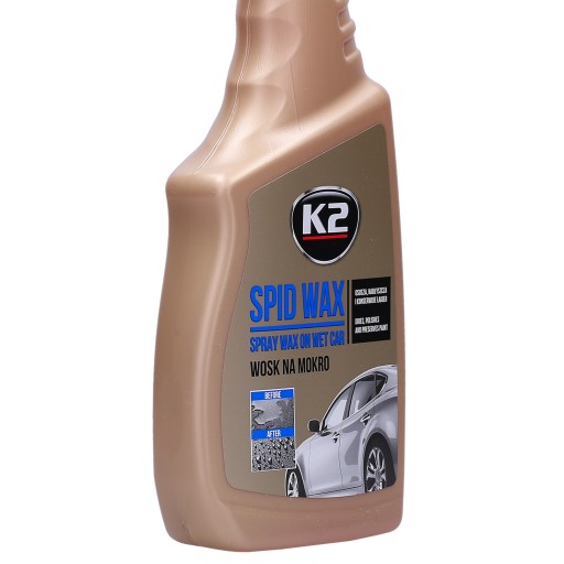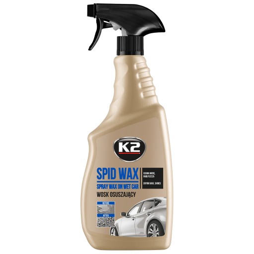 Syntetyczny wosk osuszający. Zabezpiecza lakier od razu po umyciu. Pozostawia cienką, hydrofobową warstwę. Przywraca pierwotny kolor lakieru i wydobywa jego głębię. Nadaje połysk. Po użyciu K2 Spid Wax nakładanie kolejnego wosku nie jest konieczne. Produkt może rówwnież nałozyć na suchy lakier. Zalecane jest aplikowanie na chłodny lakier, w zacienionym miejscu.