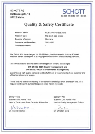 Szyba Żaroodporna 800°C Robax 4mm o NAJWYŻSZEJ na wymiar z CERTYFIKATEM I INSTRUKCJĄ