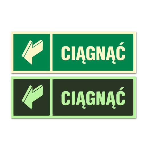 PCHAĆ CIĄGNĄĆ zestaw naklejek fotoluminescencyjnych na drzwi 150x50 mm