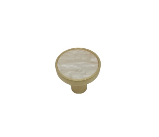 GAŁKA MEBLOWA W ZŁOTYM SZCZOTKOWANYM KOLORZE Z WSTAWKĄ IMITUJĄCĄ MASĘ PERŁOWĄ. WYKONANA Z METALU O ŚREDNICY 25 MM.