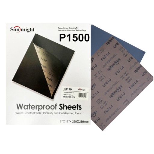 Papier Waterproof jest produkowany z wysokie jakości papieru wodoodpornego zapewniającego dużą elastyczność i znakomite wykończenie powierzchni szlifowanej. Specjalnie opracowana technologia znacznie redukuje możliwości zwijania papieru w rolkę, po zamoczeni w wodzie, co ułatwia pracę.