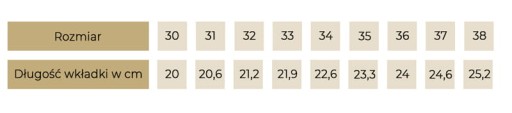 Przy wyborze rozmiaru obuwia prosimy sugerować się długością wkładki. Do wymiaru stopy dodaj około 0,5 do 1 cm i porównaj z długością wkładki.