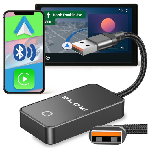 Adapter Car Connect BLOW to nowoczesne rozwiązanie, które pozwala zamienić przewodowe połączenie z systemem multimedialnym w samochodzie na bezprzewodowe, eliminując konieczność używania kabli. Wystarczy podłączyć adapter do portu USB w radiu obsługującym CarPlay lub Android Auto, a następnie sparować telefon przez Wi-Fi i Bluetooth. Po krótkiej konfiguracji system działa tak, jakby telefon był podłączony przewodem – zapewniając dostęp do nawigacji, muzyki, asystenta głosowego i wiadomości bez konieczności wyciągania telefonu z kieszeni. Dzięki temu jazda staje się bezpieczniejsza i wygodniejsza, a wnętrze auta wolne od zbędnych kabli.