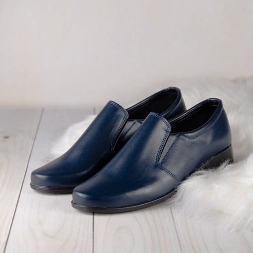 Eleganckie, wsuwane buty komunijne dla chłopca w kolorze granatowym. Buciki dobrze wyprofilowane, dzięki czemu są bardzo wygodne. Klasyczny model bez sznurówek, który dopasuje się do każdej stopy dzięki elastycznym gumeczkom wszytym po bokach cholewki. Zewnątrz obuwie wykonane z miękkiej licowej skórki ekologicznej, natomiast wkładka ze skóry naturalnej.