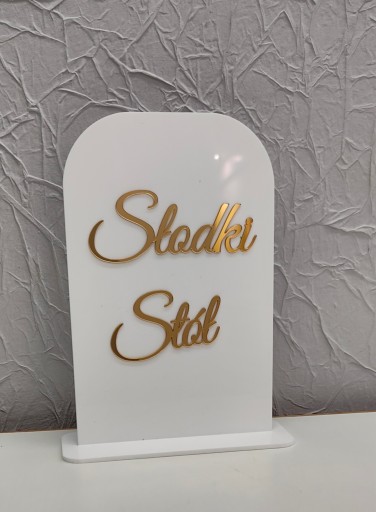 Tabliczka stół Słodki Stół wesele impreza biała plexi złote srebrne lustro