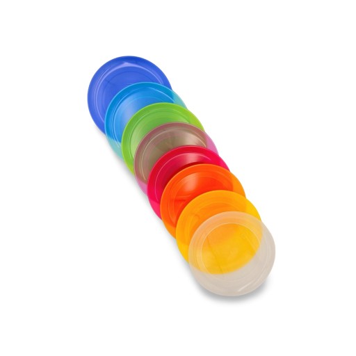 ✔ Talerze dostępne są w 8 intensywnych kolorach: żółty, pomarańczowy, czerwony, zielony, niebieski, turkusowy, biały, wrzosowy.