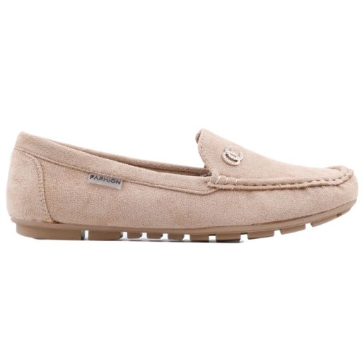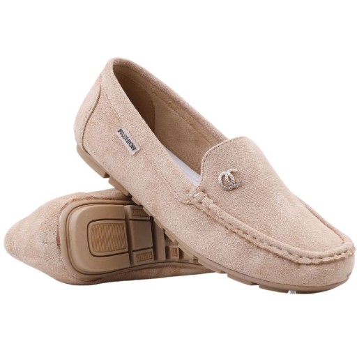 BEŻOWE MOKASYNY DAMSKIE ZAMSZOWE WSUWANE PÓŁBUTY PŁASKIE KLASYCZNE