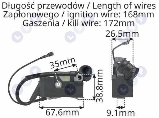 Trwała cewka zapłonowa stosowana w piłach łańcuchowych spalinowych różnych marek. Moduł uniwersalny montowany w pilarkach chińskich jak i markowych.