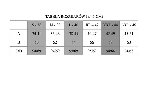 Wymiary podane w tabeli - proszę dokładnie porównać, rozmiarówka Polska standardowa odpowiadająca rzeczywistości.