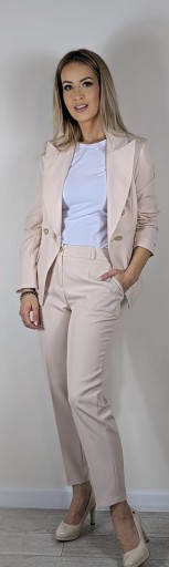 Spodni klasyczna cygaretka, na pasku zapinane na guzik ze szlufkami, spodnie na kant, kieszonki, z tyłu wszyta gumka - dopasowują się doskonale. Hitowy model - naprawdę cudowny zestaw.