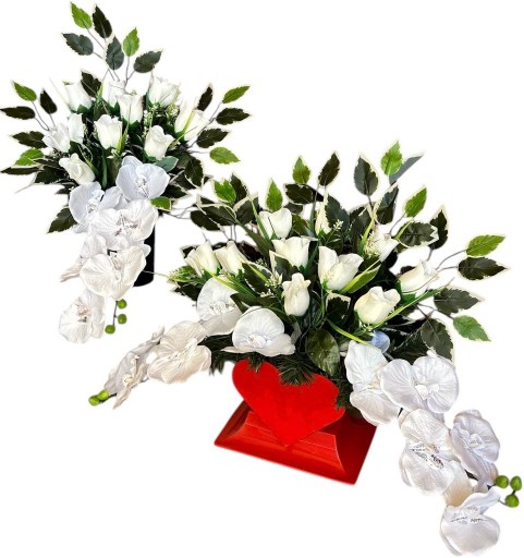 Zapraszamy do zakupu dużej kompozycji nagrobnej zestaw donica serce + wazon