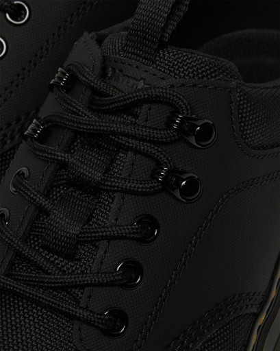Oryginalne półbuty z kolekcji obuwia Dr. Martens. Linia #TRACT. Sznurowane. Wykonane z grubego, impregnowanego płótna w połączeniu ze wstawkami ze skóry naturalnej. Wnętrze wyściełane warstwą gąbki pokrytej miękką tkaniną. Podeszwa o charakterystycznym kształcie, doszywana do wierzchu buta przy pomocy słynnej, żółtej nici. Wysokość podeszwy: przód - 2,00 cm, tył - 4,00 cm.
