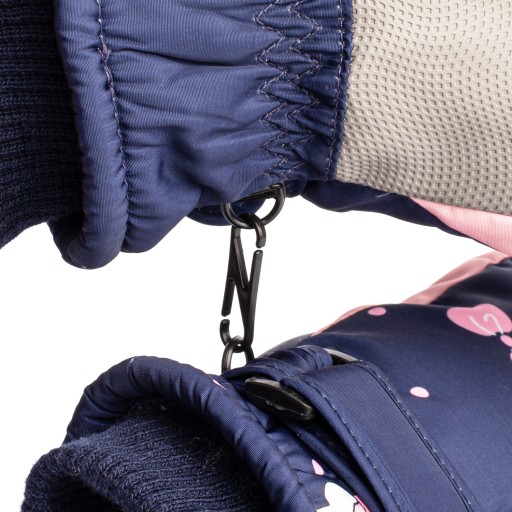 Rękawiczki posiadają pasek na rzep, który umożliwia precyzyjne dopasowanie do nadgarstka, zapewniając stabilność podczas zabawy. Dodatkowe zapięcie łączące rękawiczki zapobiega ich zgubieniu, ułatwiając przechowywanie. To praktyczne rozwiązanie zwiększa wygodę i ochronę przed chłodem.