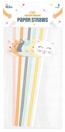Słomki papierowe "Kolorowe Kotki " 6szt