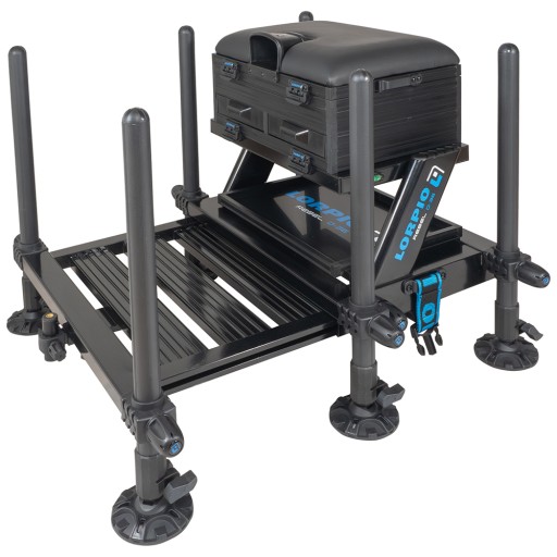 Lekki, stabilny kosz wędkarski. Mocna aluminiowa rama. Sześć teleskopowych nóg O 36mm. Komfortowe siedzisko z uchwytem do długiej wędki. Jedna boczna oraz dwie przednie szuflady pomieszczą drobne i większe akcesoria. Pod siedziskiem wysuwana tacka. Wygodny, regulowany, szeroki pas naramienny gwarantuje wygodny transport. W komplecie uchwyt do siatki. Możliwość stabilnego ustawienia nawet w trudnym terenie.