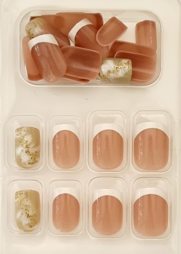 Paznokcie Sztuczne Tipsy Nude Biały French Złoty Marmur Gold Samoprzylepne