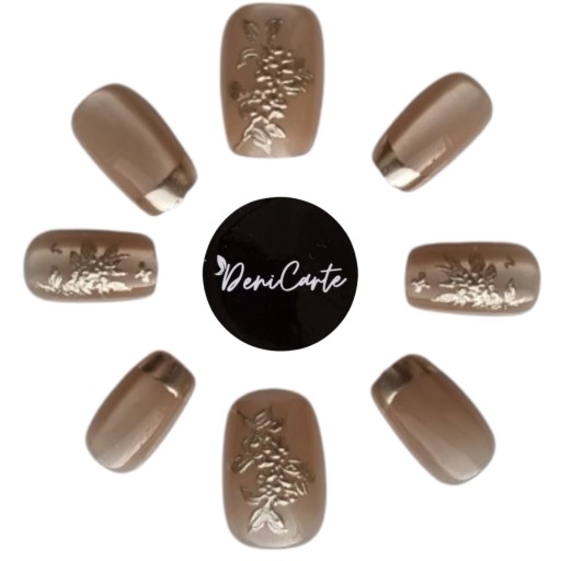 ✔️ Gotowe tipsy, paznokcie square. Naklejane sztuczne paznokcie zdobione.