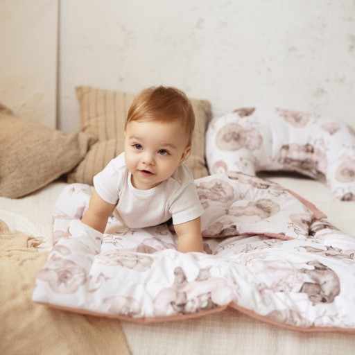 KOMPLET BAWEŁNIANA POŚCIEL Z WYPEŁNIENIEM DO ŁÓŻECZKA BOCIOLAND 100x75 SŁOŃ