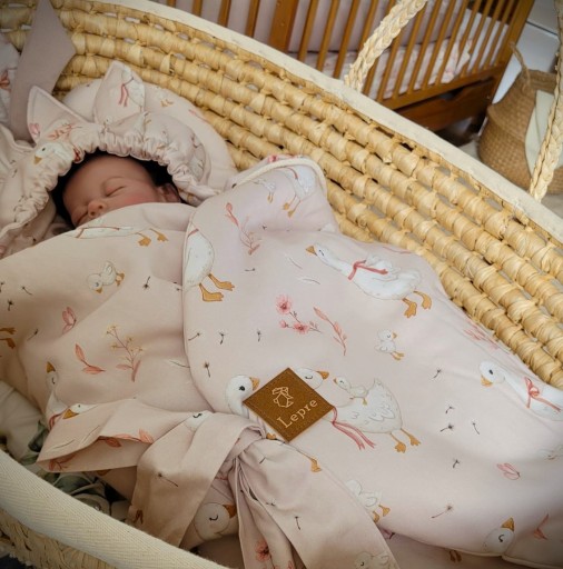 Otulacz został wykonany ręcznie z najwyższej jakości tkanin. Część wewnętrzna uszyta z niezwykle delikatnej, oddychającej wiskozy bambusowej, która podczas gorących dni daje uczucie chłodu, natomiast strona zewnętrzna to przyjemna w dotyku bawełna. Kocyk został uszyty z ogromną dbałością o estetykę oraz komfort użytkowania. Jest wypełniony certyfikowaną, cienką, antyalergiczną włókniną silikonową.