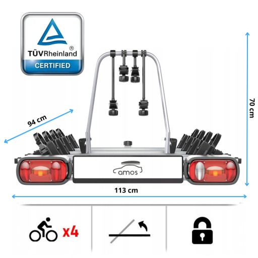 Posiadanie przez produkty Amos certyfikatu TÜV stanowi gwarancję bezpieczeństwa użytkowania produktów tej marki. Wybierając platformę Amos masz pewność, że Ty i Twoje rowery są bezpieczne przez całą podróż.