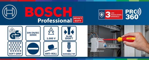 - Przy użyciu wkrętaka VDE SL 6,5 x 125 Bosch Professional można dokręcać i odkręcać wkręty oraz śruby, nawet w razie przypadkowego kontaktu z elementami pod napięciem.