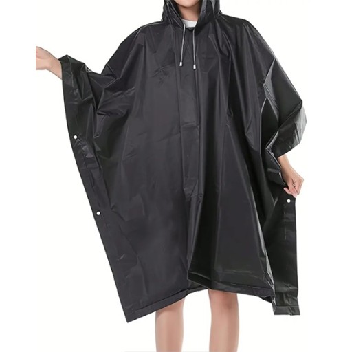 Praktyczny płaszcz przeciwdeszczowy w formie poncho, wykonany z wytrzymałego materiału EVA, który zapewnia ochronę przed deszczem.