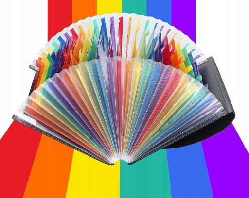 Posiada 24 kolorowe kieszenie na dokumenty A4, Do kieszeni można łatwo włożyć nawet do 3000 kartek papieru