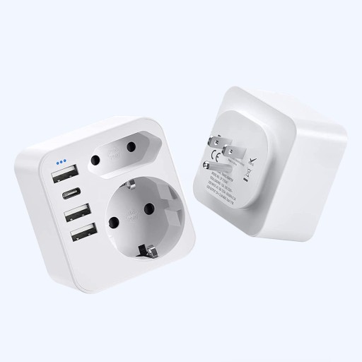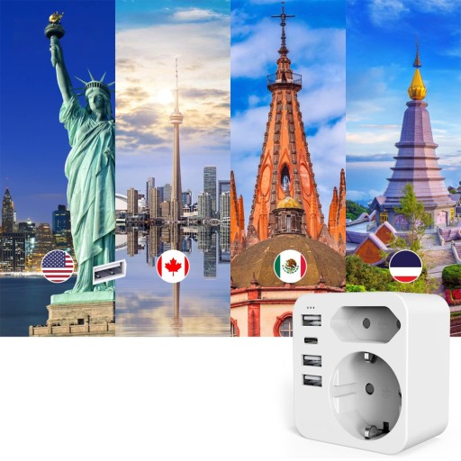 Adapter podróżny z Niemiec do USA, adapter 6 w 1 z 3 portami USB i 1 portem USB-C, odpowiedni do USA, Kanady, Meksyku i Tajlandii