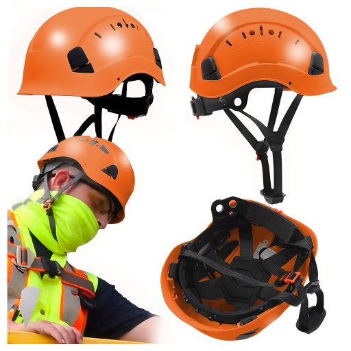 Kask Wspinaczkowy Hełm Ochronny Wentylowany Pasek Podbródkowy Pomarańczowy