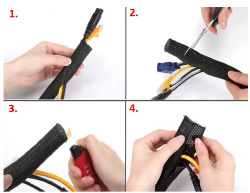 1. Rozwiń maskownicę i włóż przewody do środka.