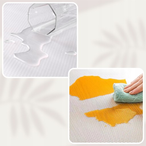 Mata jest łatwa do czyszczenia – wystarczy przetrzeć ją wilgotną ściereczką lub spłukać wodą, co zapewnia szybkie i bezproblemowe utrzymanie higieny.