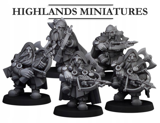 Przedmiotem oferty jest zestaw dziesięciu modeli Dwarf Rangers CMD od Highlands Miniatures , wydrukowany na drukarce 3D w technologii SLA.