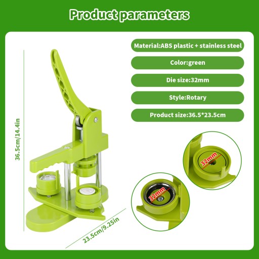 2. Maszyna do produkcji odznak 32 mm wykonana jest z przyjaznego dla środowiska tworzywa konstrukcyjnego ABS, korpus i forma są integralnie uformowane, o niewielkiej wadze, długiej żywotności i łatwej obsłudze;