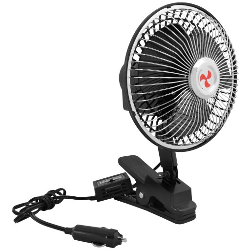 Wentylator zasilany jest napięciem 24V, co czyni go idealnym rozwiązaniem dla samochodów ciężarowych. Działa również bez problemu przy napięciu 12V, co sprawia, że jest kompatybilny z samochodami osobowymi. Choć przy niższym napięciu (12V) wentylator generuje nieco mniejszą moc, nadal zapewnia wystarczający przepływ powietrza, skutecznie ochładzając wnętrze pojazdu.
