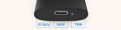 Dzięki interfejsowi USB-C 3.2 Gen 2 x 1 nie musisz martwić się o szybkość przenoszenia danych. Może ona sięgać nawet 10 Gb/s. Wysoką wydajność gwarantuje też polecenie TRIM oraz protokół UASP, dzięki któremu urządzenie USB może wykonywać kilka poleceń w jednym czasie bez porzucania któregokolwiek z nich.